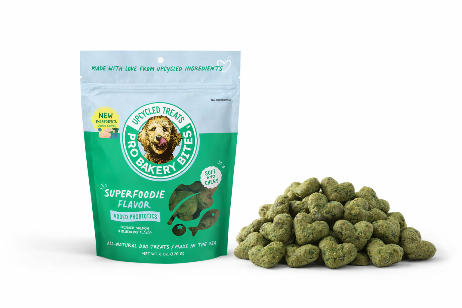 Bakery-fresh treats made with upcycled ingredients and packed with gut-friendly probiotics. Each soft chewy bite delivers perfect nutrition for daily treating.
